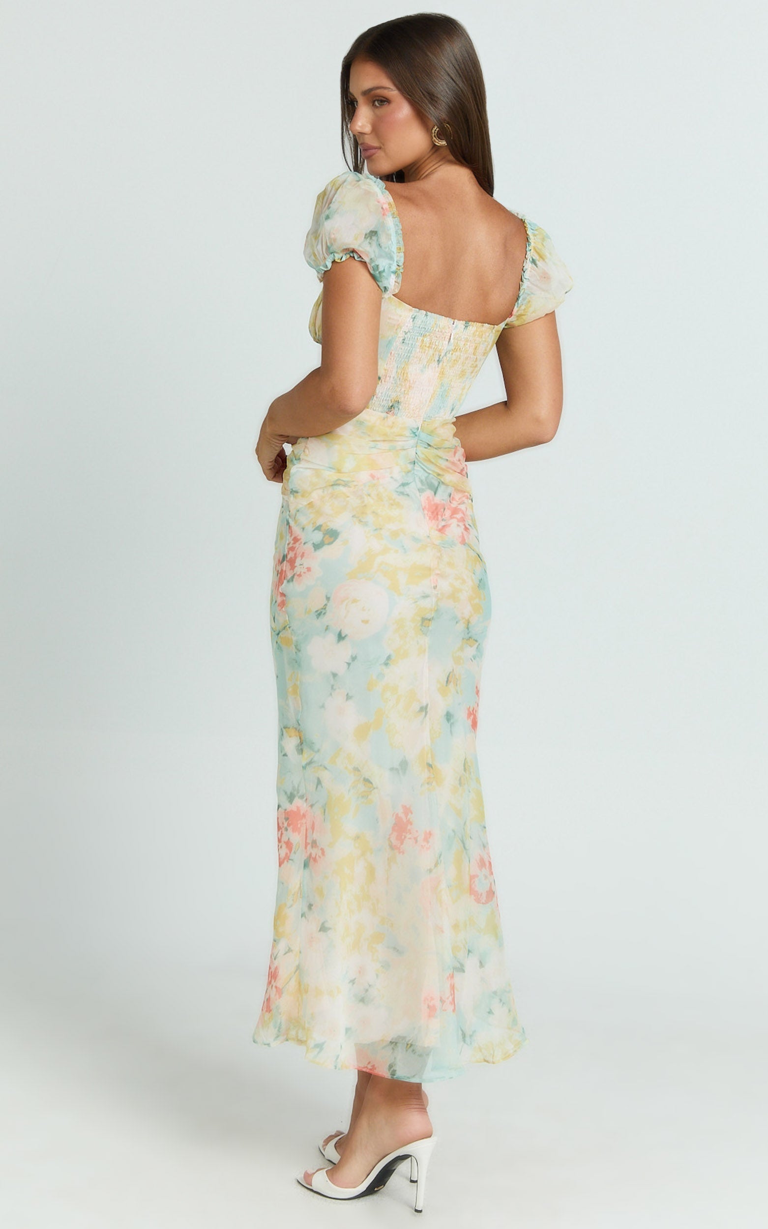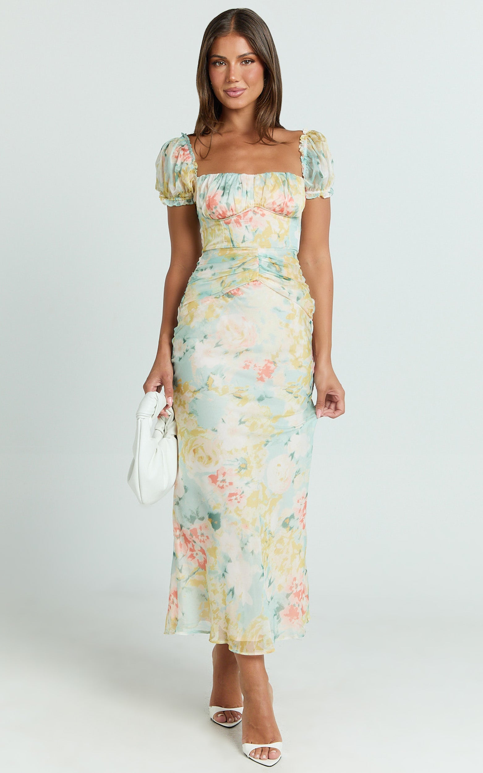 Sweetheart Neckline Short Sleeve Dress in Yellow