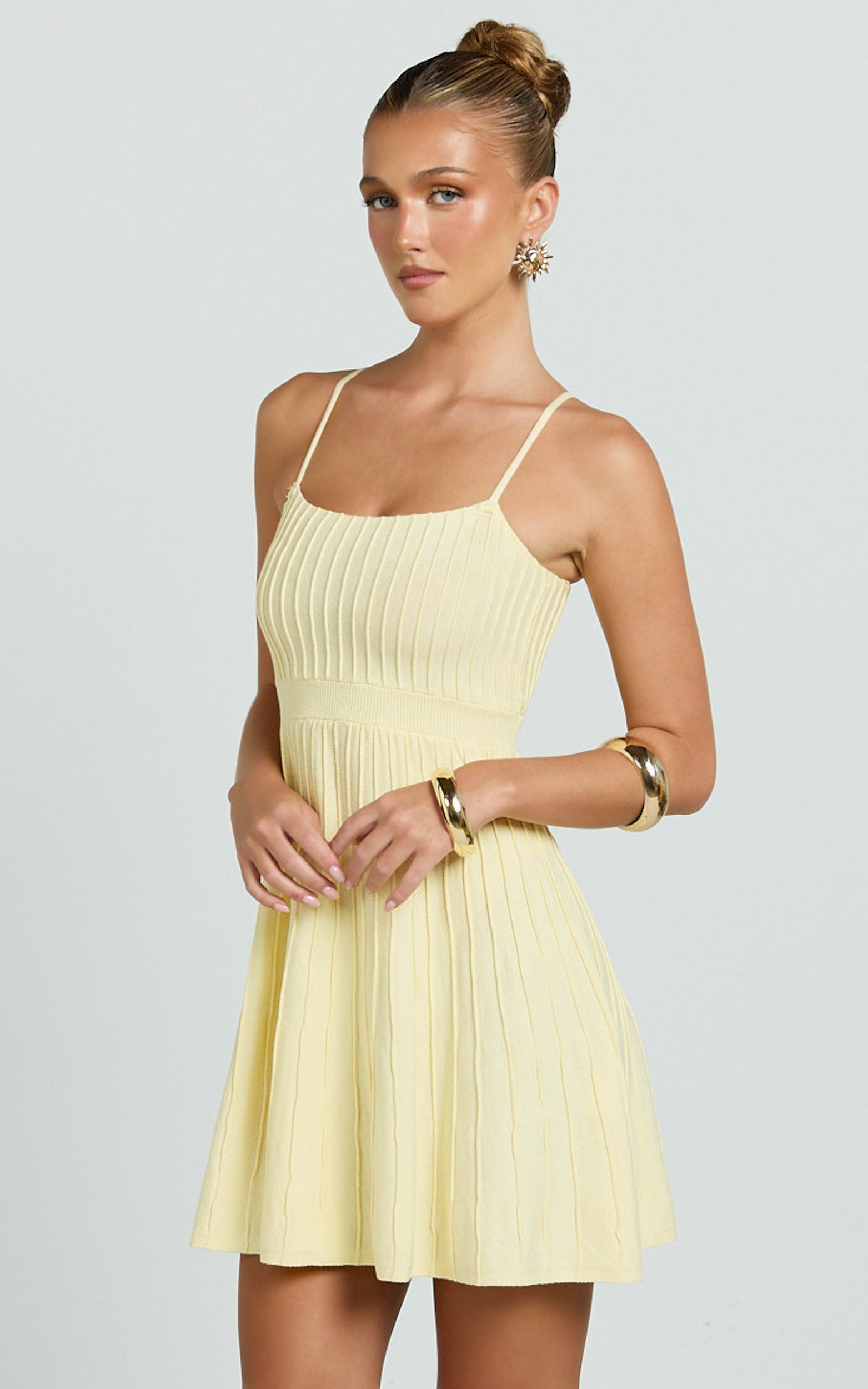 Panelled Knit Mini Dress in Butter Yellow