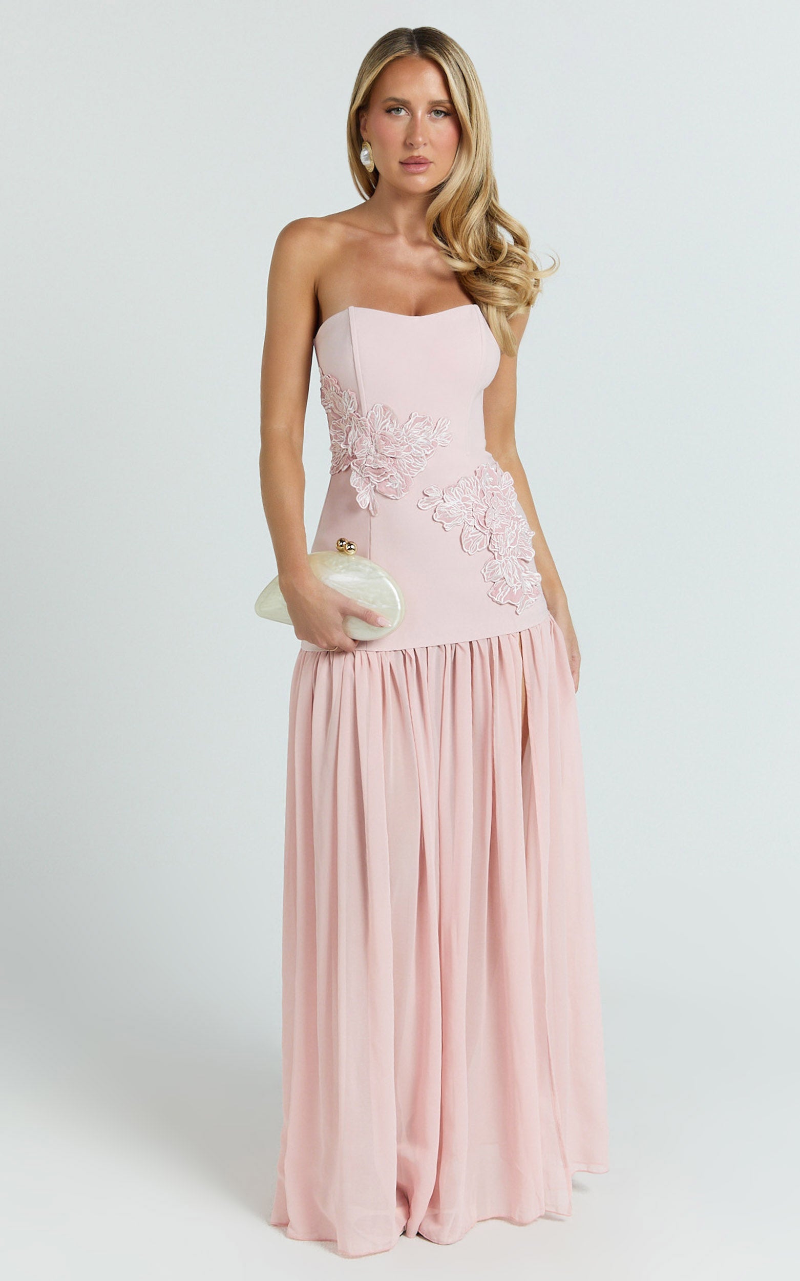 Peplum Bodice Contrast Georgette Dress in Pink