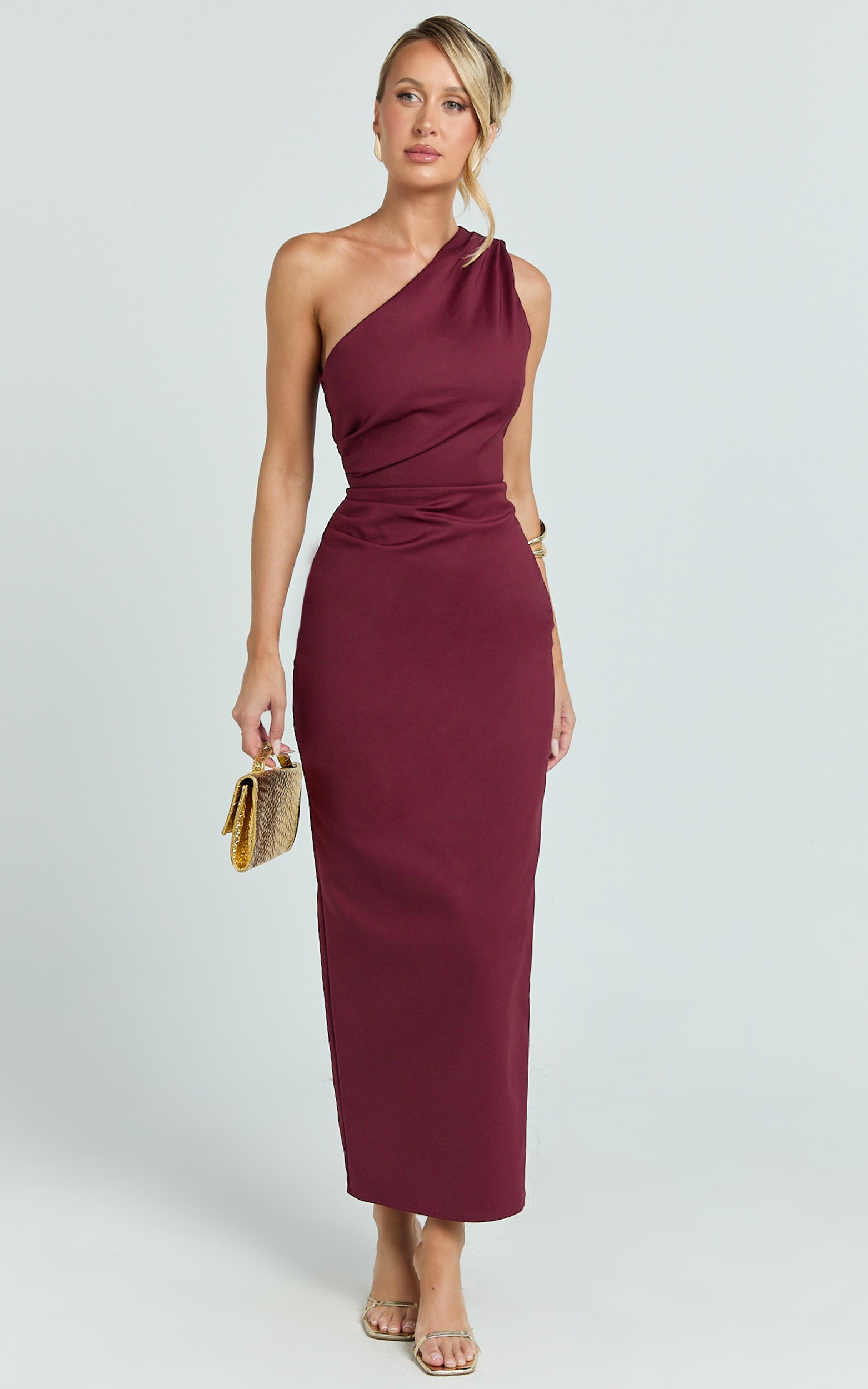 One Shoulder Fitted Dress in Wine